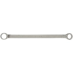 Made of drop forged American alloy steel. Two 12 point openings per wrench. Long pattern for leverage. 45 Degree offset for obstruction clearance. Satin chrome finish. Made in U.S.A. Head measures 1-1/32" x 1-5/32" diameter by 15/32" x 15/16" thick.